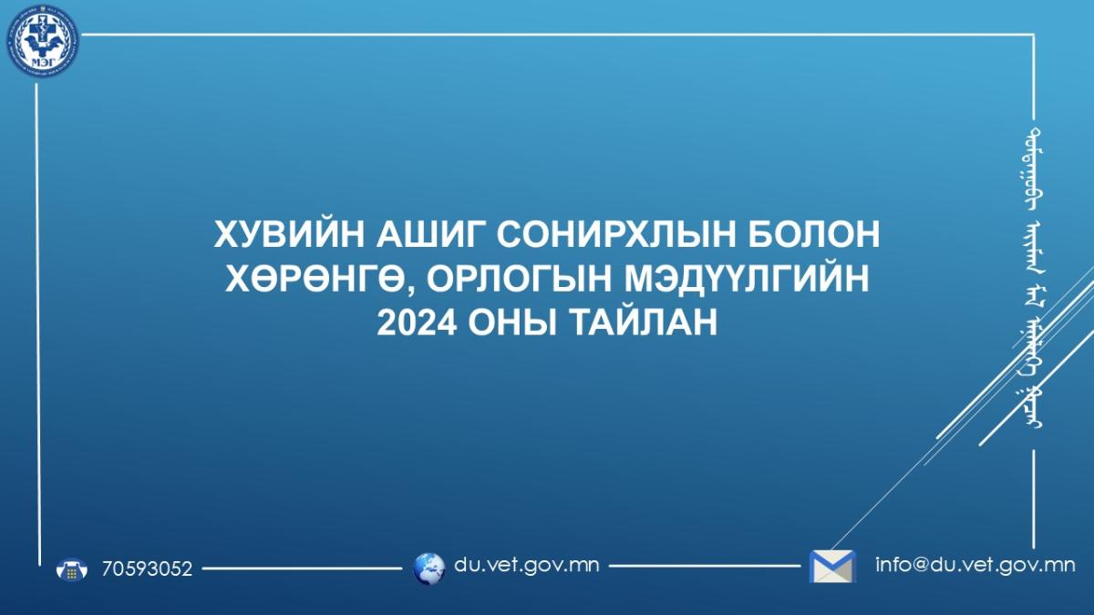 ХУВИЙН АШИГ СОНИРХЛЫН БОЛОН ХӨРӨНГӨ, ОРЛОГЫН МЭДҮҮЛГИЙН 2024 ОНЫ ТАЙЛАН