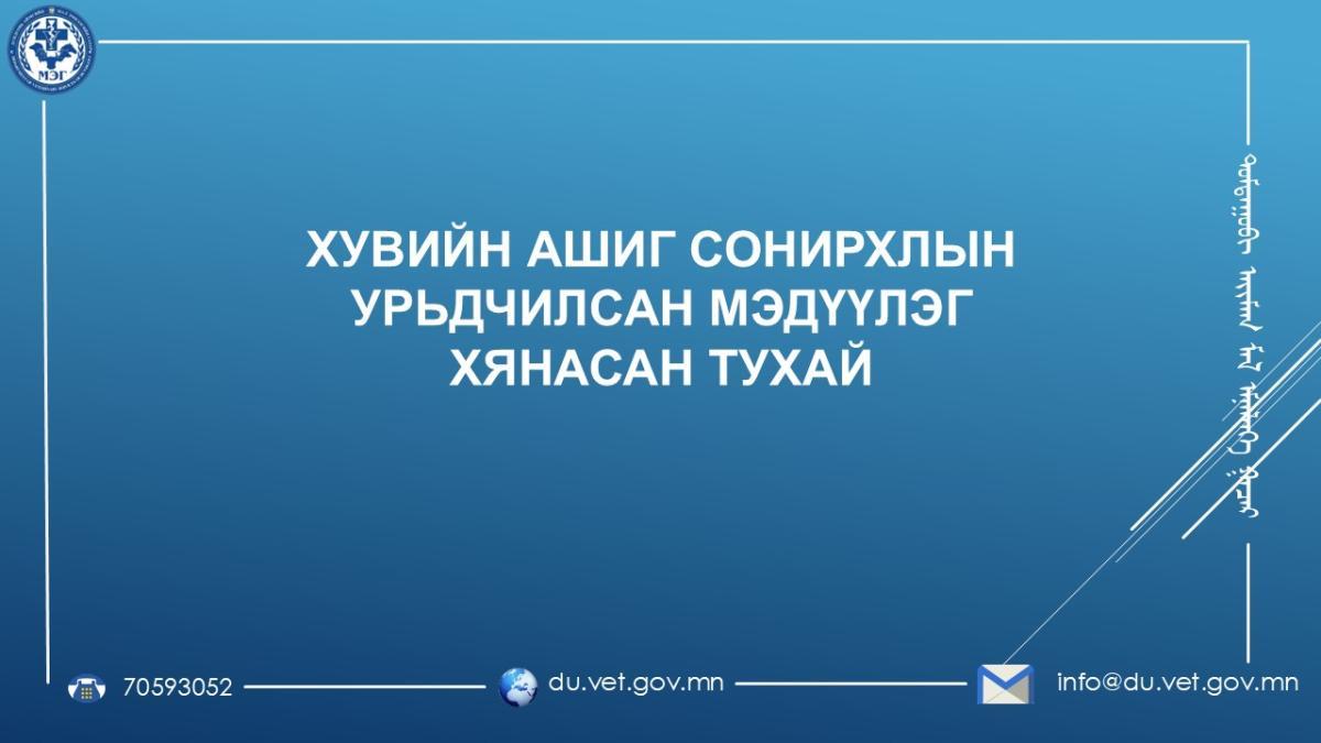 ХУВИЙН АШИГ СОНИРХЛЫН УРЬДЧИЛСАН МЭДҮҮЛЭГ ХЯНАСАН ТУХАЙ