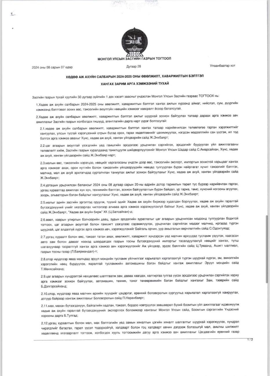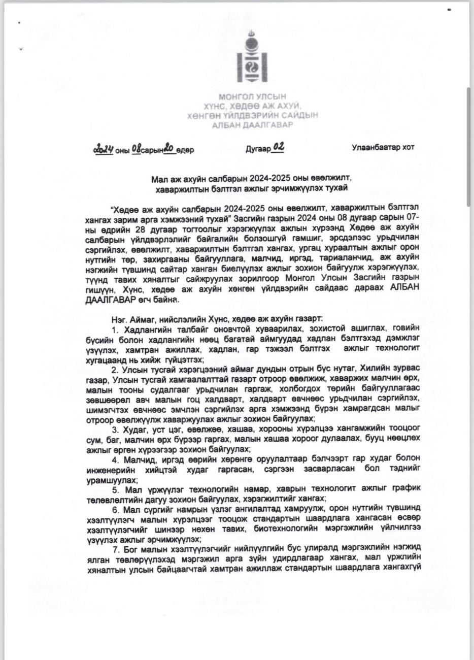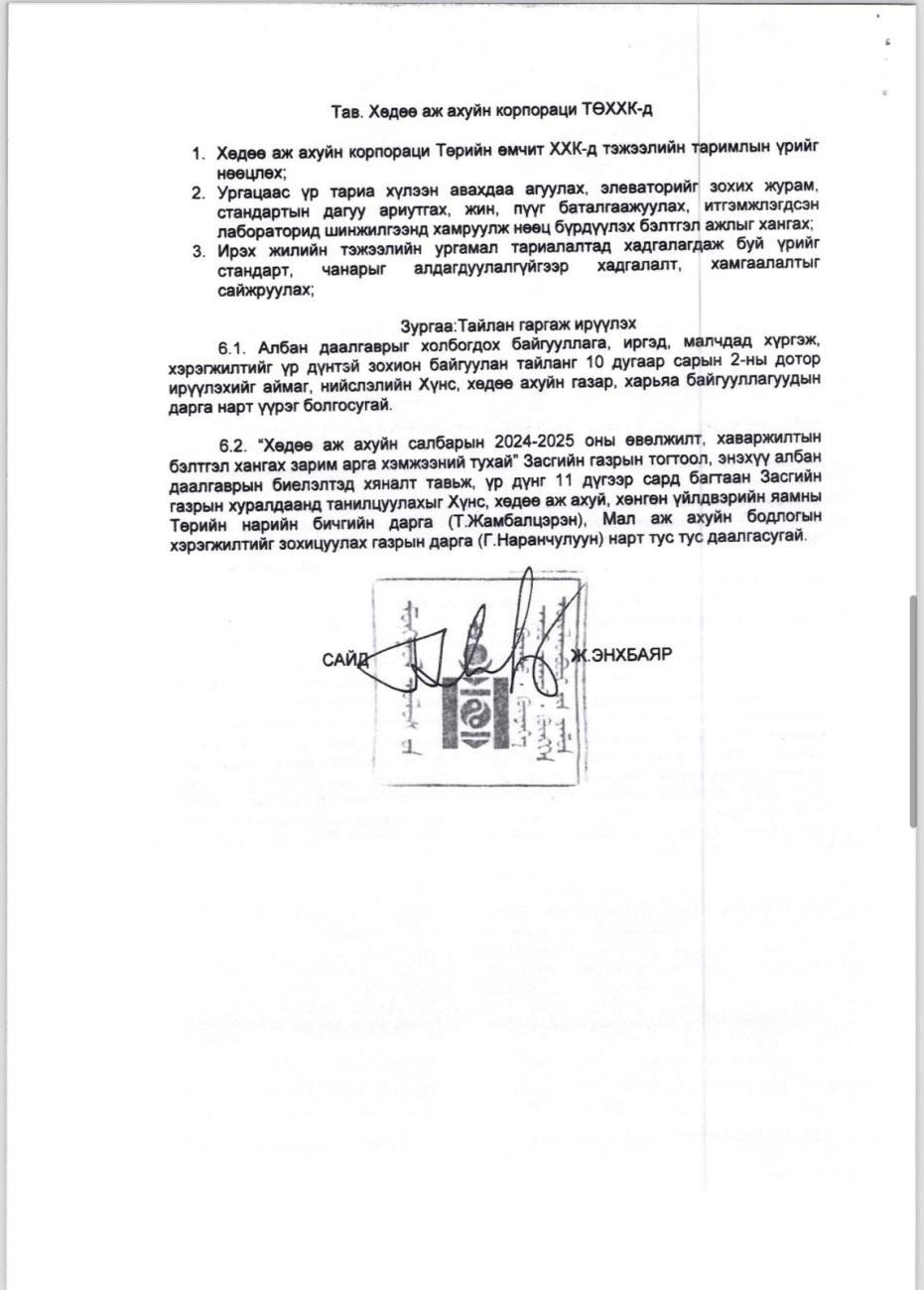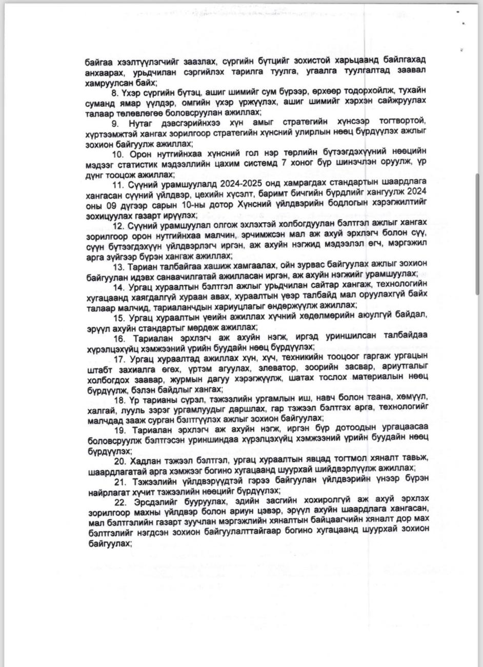 МОНГОЛ УЛСЫН ХҮНС ХӨДӨӨ АЖ АХУЙ, ХӨНГӨН ҮЙЛДВЭРИЙН САЙДЫН АЛБАН ДААЛГАВАР 02