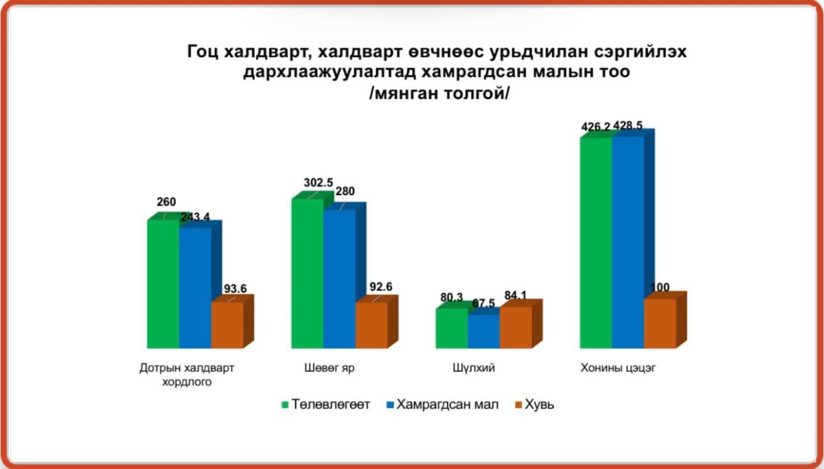 ГОЦ ХАЛДВАРТ, ХАЛДВАРТ ӨВЧНӨӨС УРЬДЧИЛАН СЭРГИЙЛЭХ ДАРХЛААЖУУЛАЛТАД ХАМРАГДСАН МАЛЫН ТОО