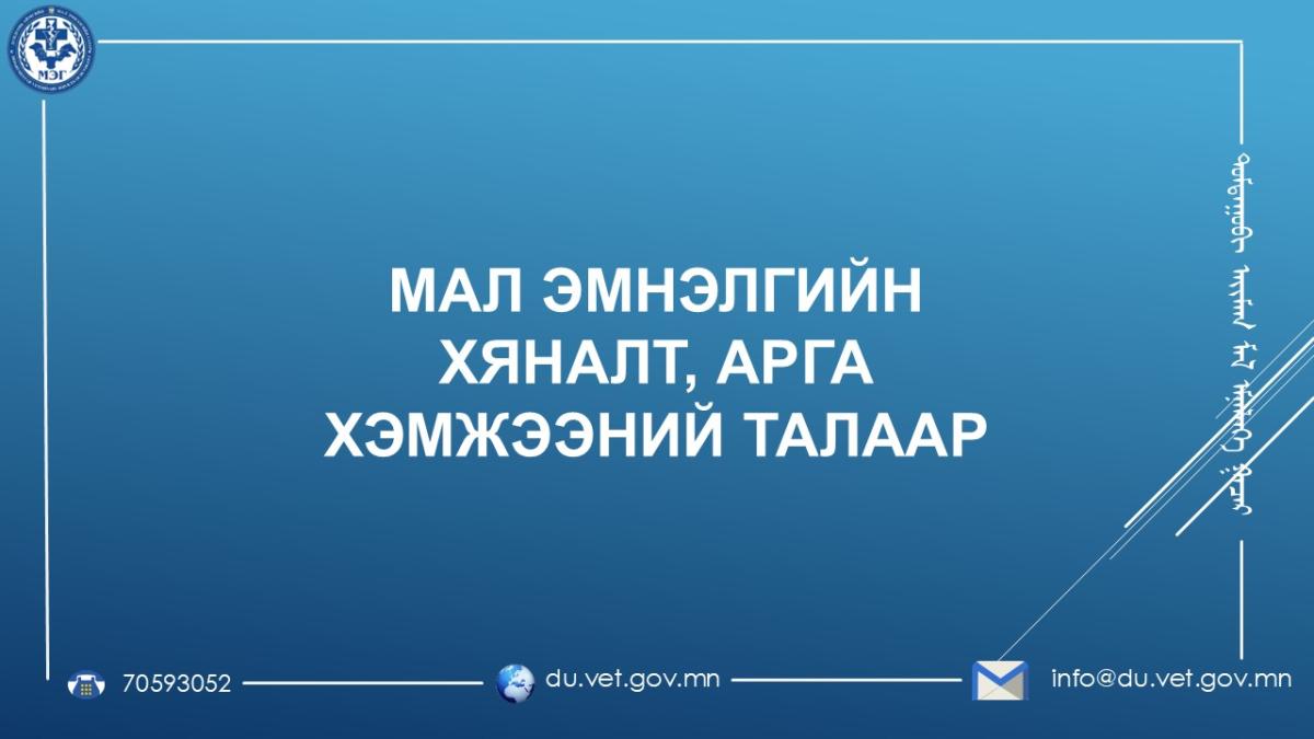 МАЛ ЭМНЭЛГИЙН ХЯНАЛТЫН АРГА ХЭМЖЭЭНИЙ ТАЛААР