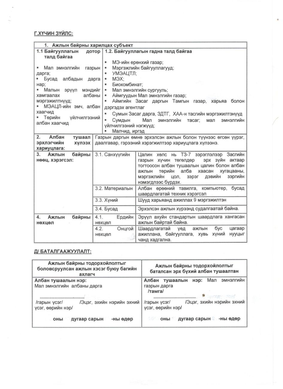 Мал, амьтны эрүүл мэндийн албаны даргын албан тушаалын тодорхойлолт