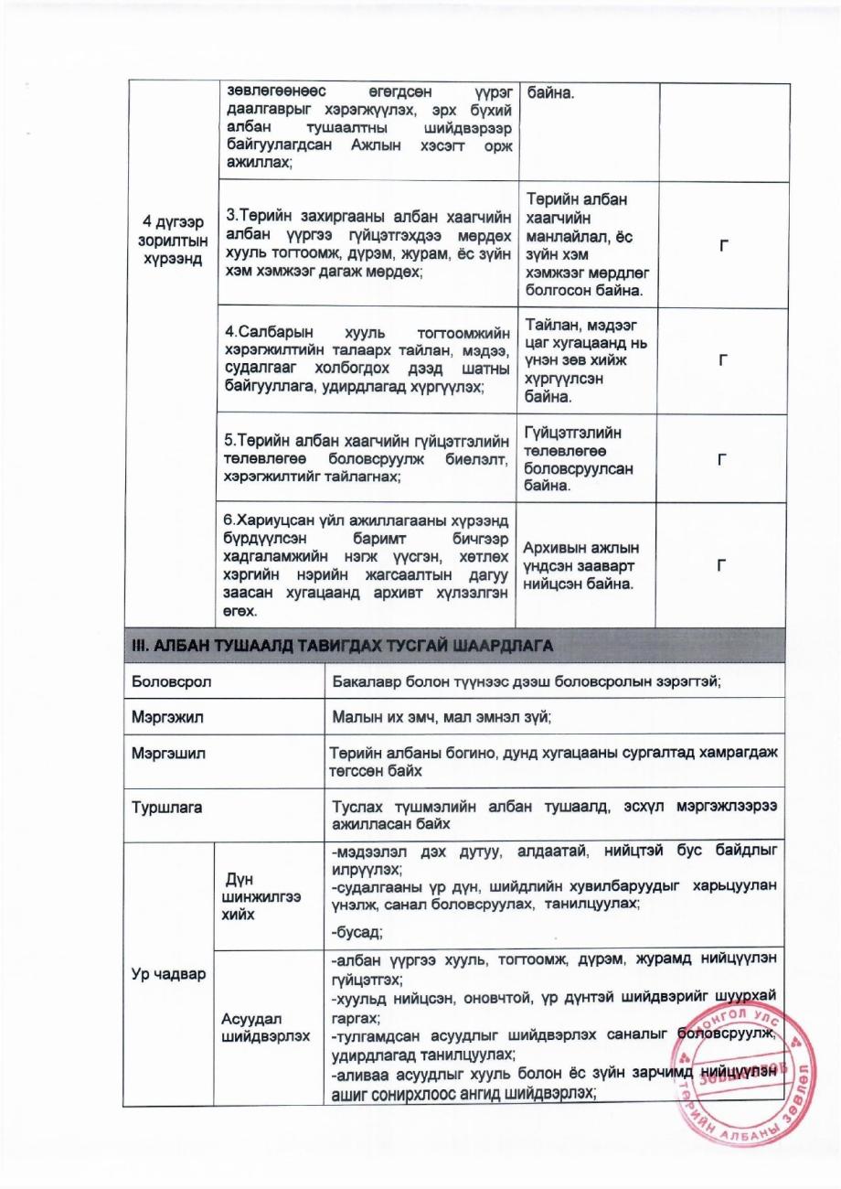 Албан хаагчийн ажлын гүйцэтгэлийг үнэлэх журам