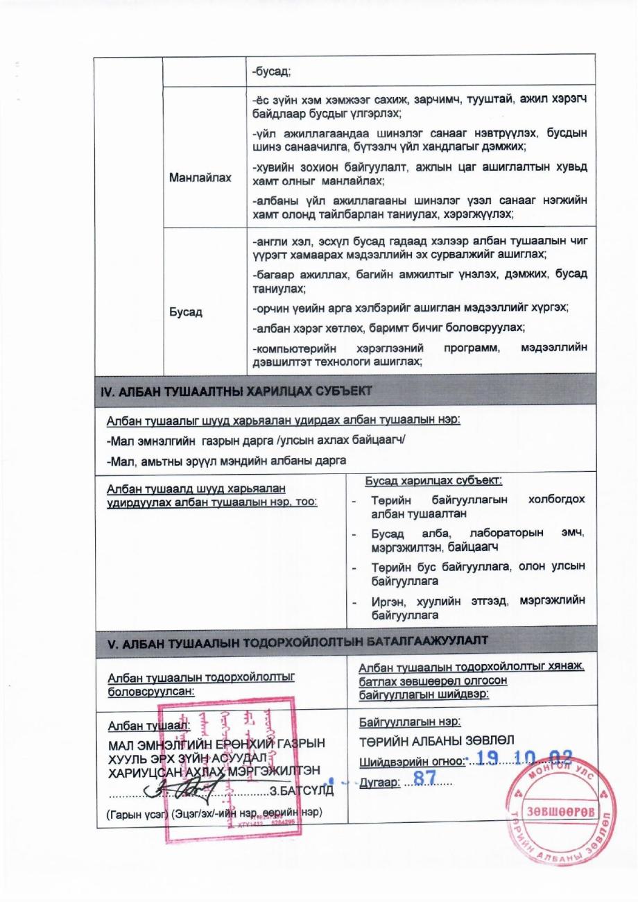 Мал амьтны эрүүл мэндийн албаны зооноз, халдварт өвчин, тандалтын асуудал хариуцсан мэргэжилтэн