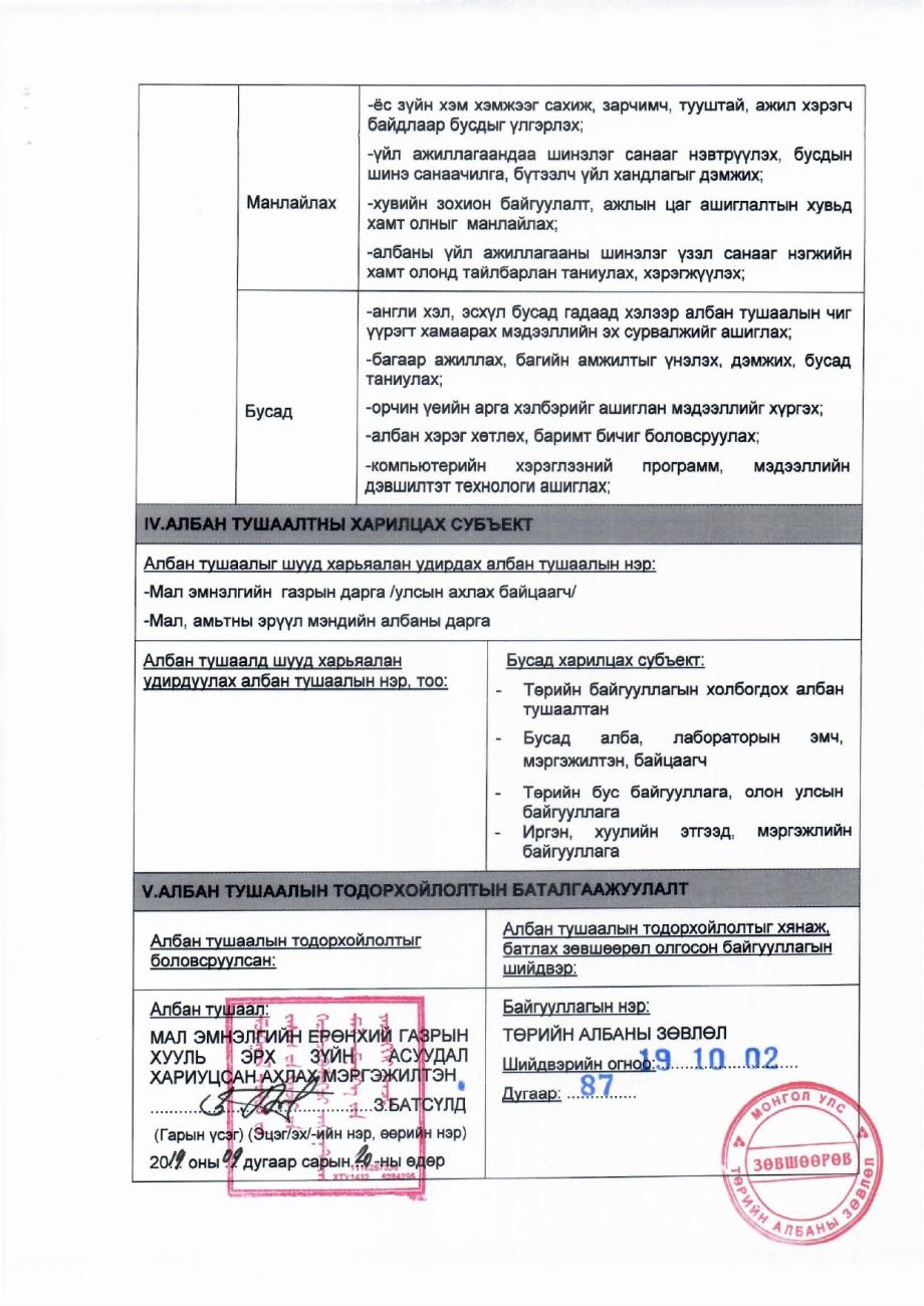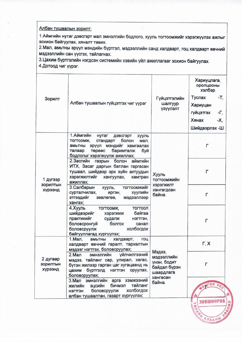 Мал, амьтны эрүүл мэндийн албаны өвчний мэдээ тайлан, цахим бүртгэл, хяналт шинжилгээ үнэлгээ хариуцсан мэргэжилтний албан тушаалын тодорхойлолт