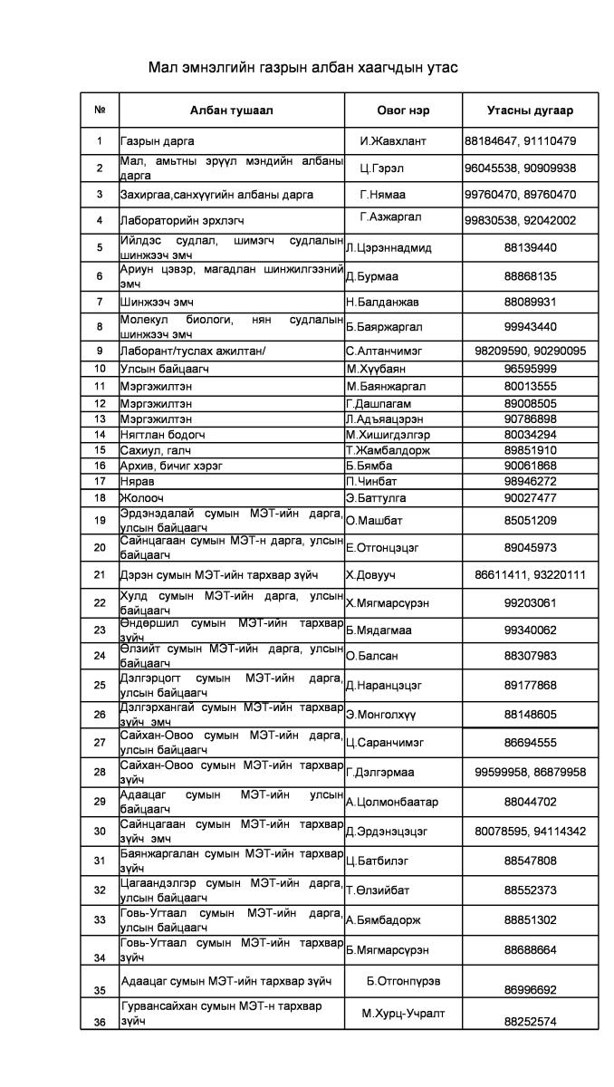 Мал эмнэлгийн газрын албан хаагчдын мэдээлэл