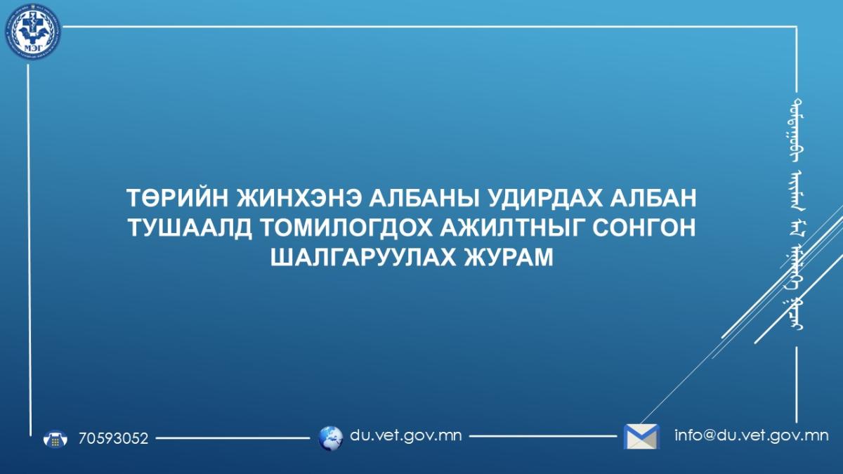 "Төрийн жинхэнэ албаны удирдах албан тушаалд томилогдох ажилтныг сонгон шалгаруулах журам"